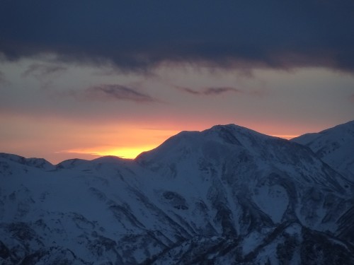 外仕事をしていて夕陽が沈むのは見逃してしまいましたが、そろそろかと思い西の空を見ると樅沢岳の左肩が紅く染まっていました。日が沈むのが早いと一日もあっという間にすぎてしまいます。