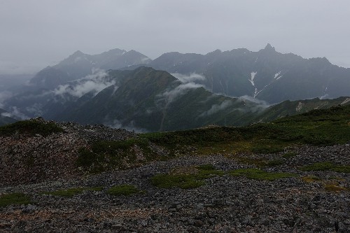 という図式、どうも今回はこの北アルプスにも適用されそうな予報が、いろんな気象機関から発表されています。ただ、今のところは雨は降れども弱く、意外にも周囲の見通しは比較的効いているんです。