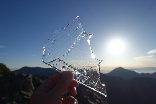 先にも述べた通り、この日の冷え込みで、至る所で氷が張っていました。この日は大天荘も初氷と、今シーズン初めて水道の水抜きをしたとのこと。