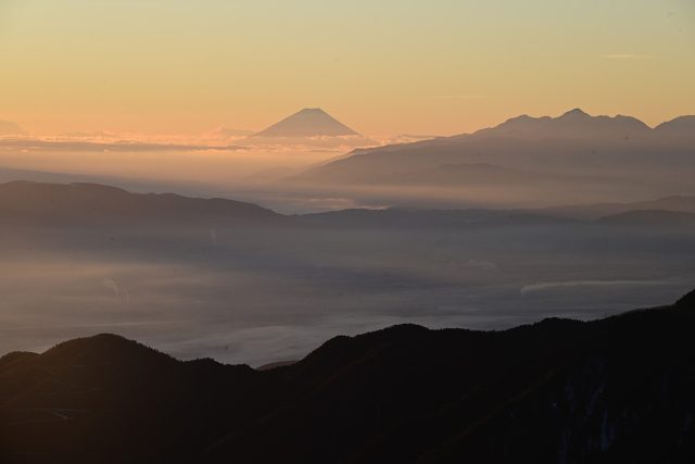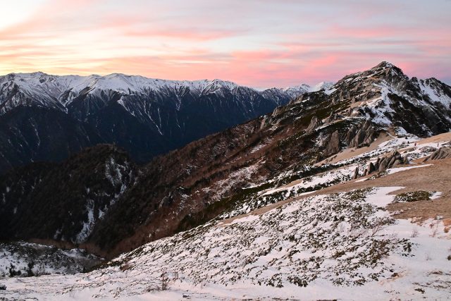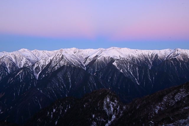 ▲ビーナスベルトと地球影が美しい裏銀座の山々