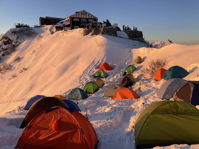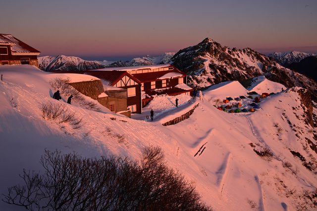 この10年間雪の少ない年が続いていましたが、昨年に続き今年も営業最終日に冬山らしい北アルプスを見ることができました。雪が降ると本当にきれいです。朝・夕の太陽が当たると雪面が赤くなり冬山の醍醐味を味わえます。11月22・23日素晴らしい天気となり、最終日も雪山好きの大勢のお客様で賑わいました。無事に今シーズンの営業最終日を迎え、ご利用いただきました皆様方に深く感謝申し上げます。