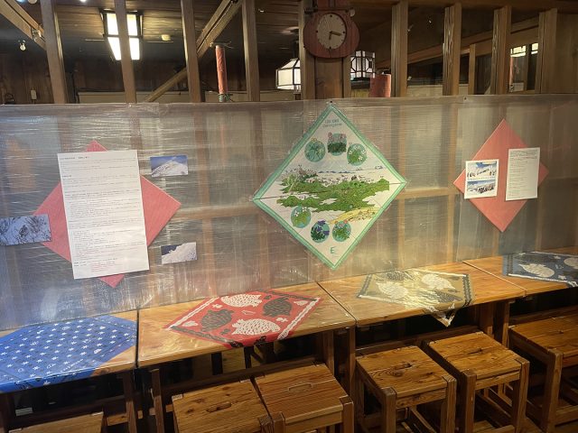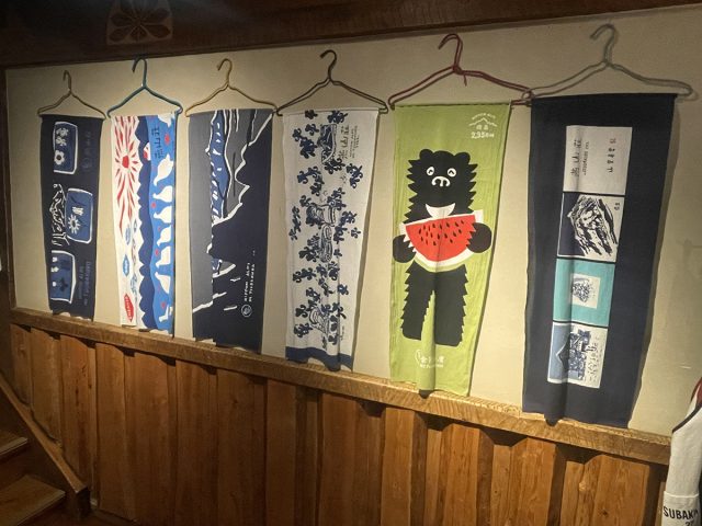 ▲燕山荘の手ぬぐいの中に合戦小屋のスイカ手ぬぐいも