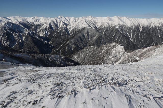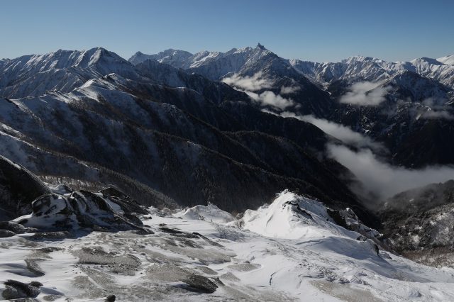 2025-2026年末年始は、再び積雪量の少ないシーズンとなりました。思い起こせば、昨年11月上旬にかなりまとまった降雪があり、一晩で吹き溜まり1m程は積もったでしょうか。幸先よい冬山シーズンと思いきや、それ以降は少雪傾向が続きます。とは言いましても、標高3,000m級の北アルプスは間違いなく氷点下20℃以下にも及ぶ厳冬期であり、今回もそれに相応しい光景を目の当たりにすることができました。