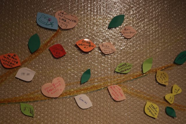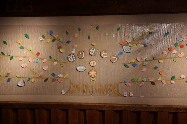 毎年この営業期間中の受付前のディスプレイは、従業員皆で考えたあるテーマに沿って、お客様に目で見て楽しんで頂けるよう工夫しています。今回は「ありがとうの木」でした。各々に込められた感謝の言葉は違いますが、思いは一つ。お互いに「ありがとう」の言葉が溢れんばかりの世の中になってもらいたいと切に願います。