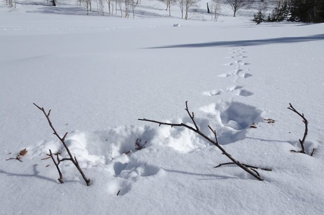 今シーズンのスノーシューツアーが始まってから4週目の今回は、寒気の影響を全く受けることなく、特にメインの二日目は快晴無風、やや汗ばむ陽気、気分上々のスノーシューハイクを満喫することができました。