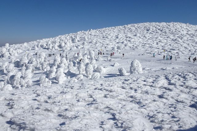 蔵王の樹氷原は、ここ数年12月下旬から3月上旬が見頃、とりわけ1月下旬から2月下旬が最も大きく成長する頃と言われています。