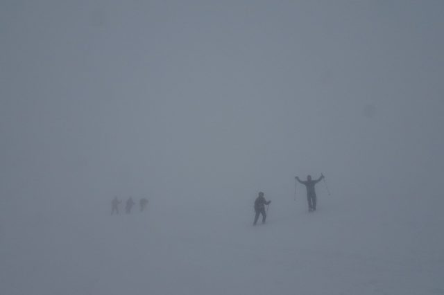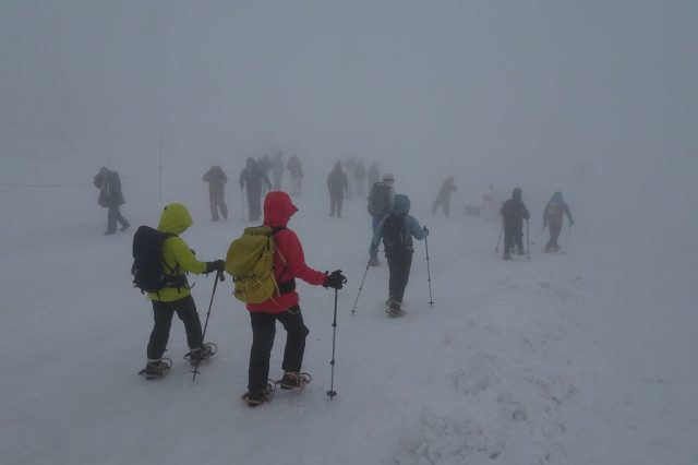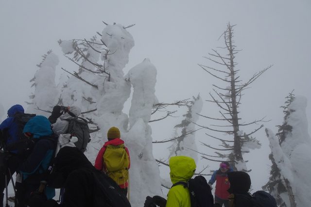 前日までの快晴はどこへやら・・・視界不良に加え風が非常に強く、未明からの気温上昇も重なり、8割以上の樹氷が一晩で見事に崩れ落ちていました。