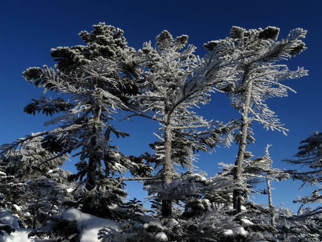 一方で、この寒さと風に加え、それになびく雲や霧が木々に着氷するおかげで、この美しい霧氷が作り出されるのも事実。