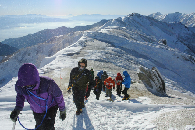 いよいよ越年登山が近づいてまいりました。合戦尾根の積雪状況(12月27日現在)と12月27日~29日の2泊3日で開催しました第2回冬季燕岳登頂ツアーの模様をお伝えします。