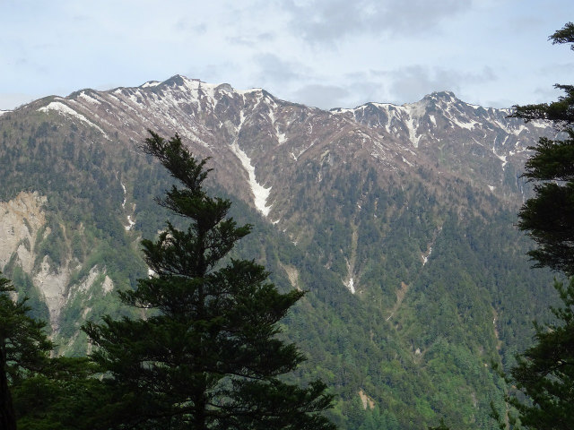 期待していた山頂からの眺望は、出発早々こそ燕岳~大天井岳~常念山脈方面の視界が、木々の合間からちらちら見え隠れしていましたが。