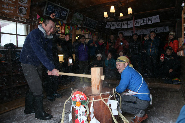 大晦日ご挨拶 右から燕山荘グループ代表赤沼、