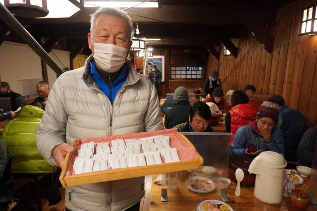 お餅はきな粉と小豆。「おいしい!」の声に笑顔になります。