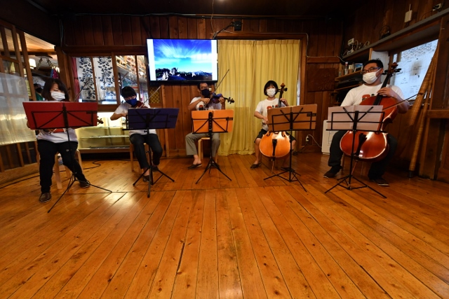「泊まった日がクラシックコンサートの日で、5人の演奏者による弦楽四重奏、少人数でもよく響き美しい音色で素晴らしかったです。映画の光景が思い浮かんだものもあり、胸がいっぱいになりました。コロナ禍での企画、開催本当にありがとうございました。」