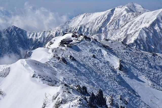 雪化粧したアルプスの女王燕岳と白銀の山々