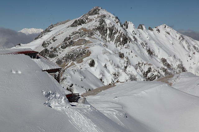 12月20日にスタッフが本格入山しましたが、この日は朝からきれいに晴れ上がり、冬のこの時期としては絶好の登山日和でした。合戦小屋の通過は昼過ぎとなりましたが、そこから上部のダケカンバの木々には見事な樹氷が崩れず残り続けてくれて、年末年始営業初めてのスタッフもいる中で、素晴らしい厳冬期の美しさを目の当たりにし、この贅沢な光景が広がる中で働ける喜びを改めて感じつつの上山でした。
