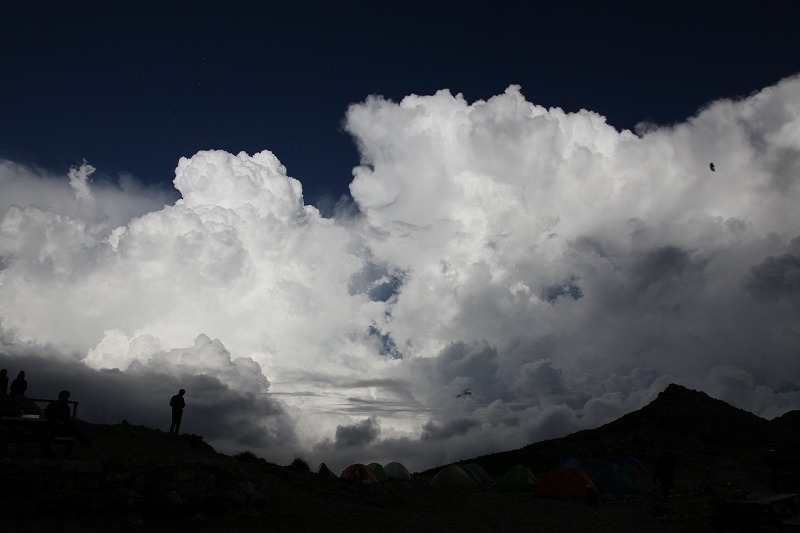 昨日の夕方、小屋の前から空を見上げると、あちこちに立派な積乱雲が。雨雲レーダーを見ても、方々で夕立・雷が観測されていました。