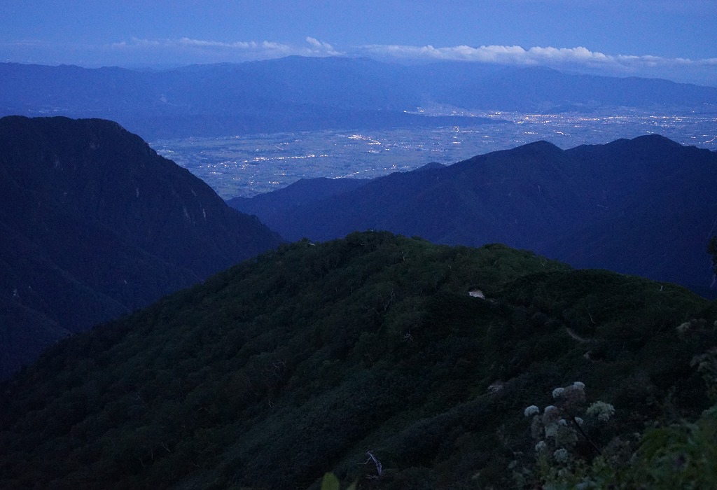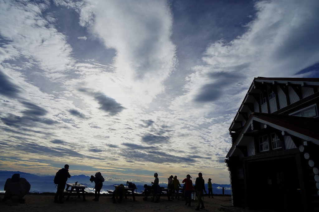 8月の終わりともなれば日の入りはずいぶんと早くなってくるものです。今日の日に入りは18時15分頃でした。ちなみにこの写真は18時半頃に撮ったものです。すでに松本や安曇野の街明かりもずいぶんと輝きだしてきています。日の入りが早くなってきたので出発時間にはお気を付けください。電車やバスなどのご都合があるかもしれませんが、日の入り時刻はその都合に合わせてはくれません。最低限、日の入り前には小屋にご到着できる計画でお越しください。季節はもう夏から秋へと変わりました。
