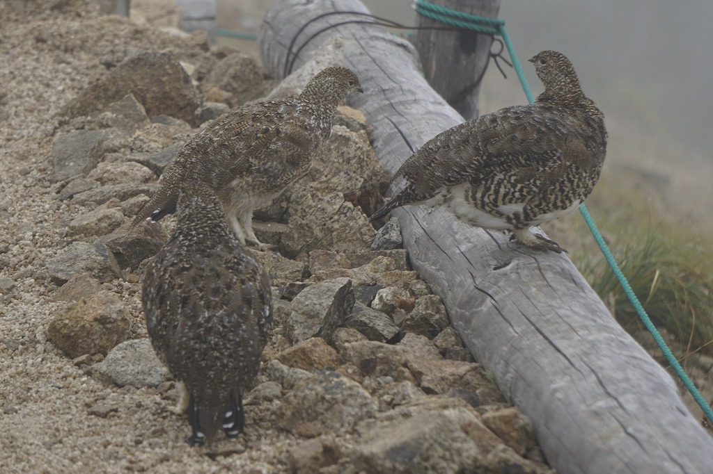 久しぶりに山荘の近くでこの親子が姿を見せてくれました。どれが親なのか分からないくらい大きくなりました。生まれて3か月もたっていないのに。成長の速さには驚きです。ここまで大きくなれば大丈夫でしょう。これからはクロマメノ木の実が出来てくるとそれを食べている姿をよく目にするようになります。クロマメノ木を探すとライチョウを見つけやすいかもしれません。
