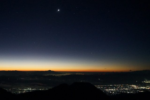 今日も美しい夜明けで始まりました。空気が比較的澄んでいるのか街の灯りがくっきりと見えていました。そして、金星がひと際明るく東の空に輝いています。