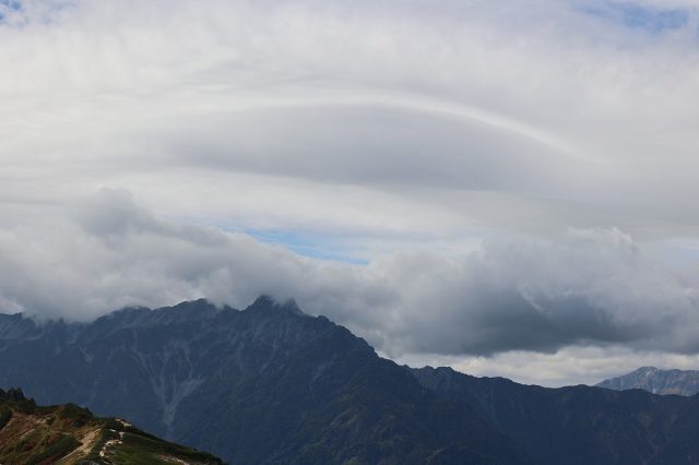 夕方になれば槍の上には、また違った形の雲が現れてきました。気温も10℃以下になってきて寒いなと感じるようになってきました。明日以降の天気予報を見ていると気温は大きく下がりそうで再び氷が張るような気温となりそうです。そろそろ夜の水道の水抜きの季節がやってきそうです。