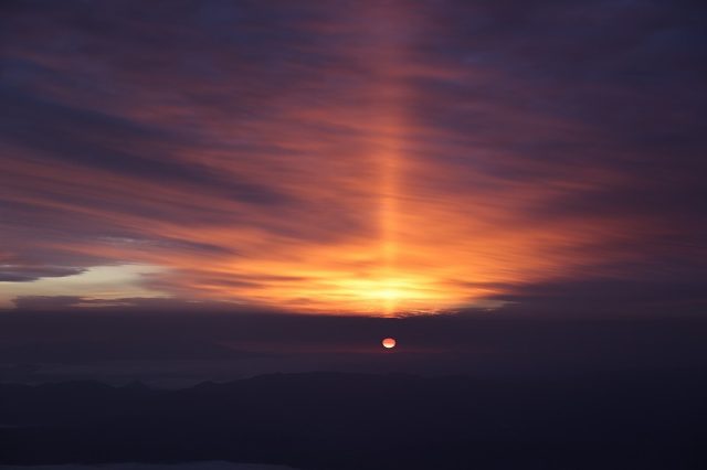 大気光学現象の一つである「太陽柱」。