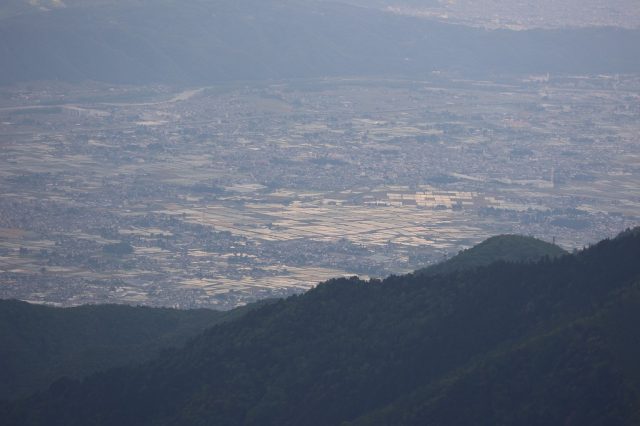 さらに冷たい空気が流れ込んできて、一時あられ混じりの雨も降りました。その後は雲が切れ、所々に太陽の光が当たるようになってきました。ちょうど安曇野の水田にもその光が当たり、どんよりとした空の中、そこだけが輝いて見えました。