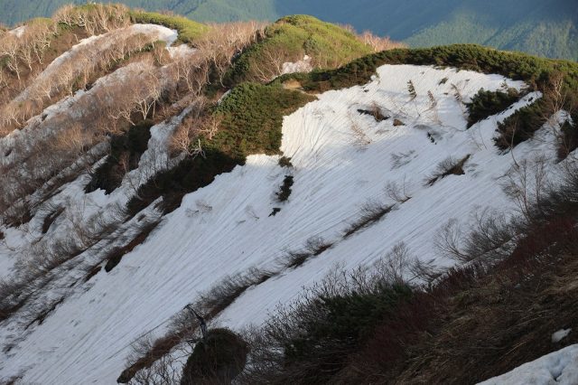 雪解けが進んでくると雪面には美しい縞模様が見られるようになってきます。