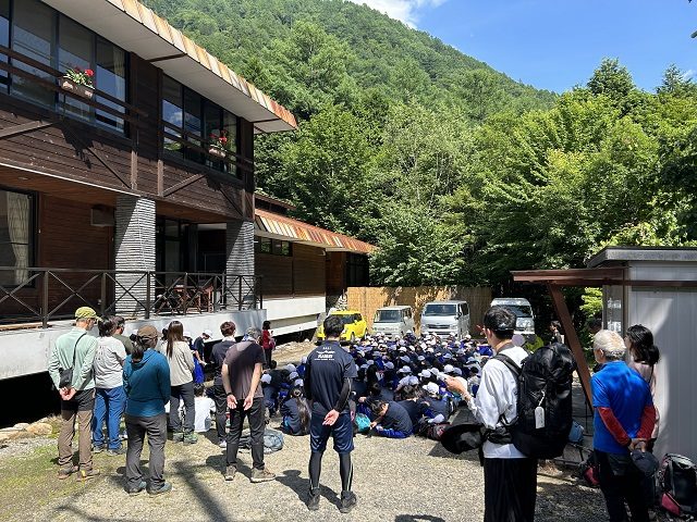 そんな暑さの中、昨日から学校登山で燕岳に登っていた穂高東中学校の皆さんが無事に戻って来られました。