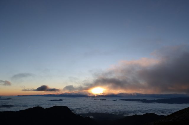 今朝の雲海、見方によっては海原のようで、峰々がまるで離島のように見えました。