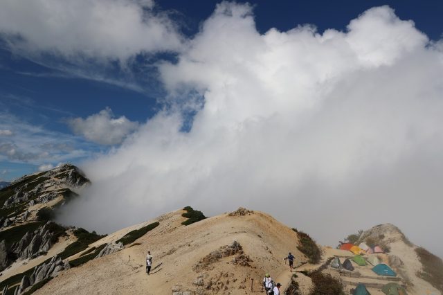 連休初日の今日は朝からとても賑やかでした。大天井方面へ行かれる方の通過は、10時頃がピークで、その頃が一番賑やかでした。縦走の計画を立てられている方もきっと多いことでしょう。ただ、明日以降の天気がちょっと気がかりです。