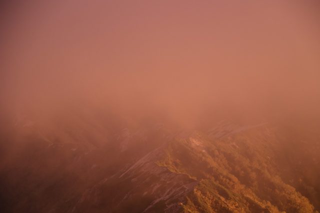 今朝の大天井岳界隈は雲が朝焼けに染まり、