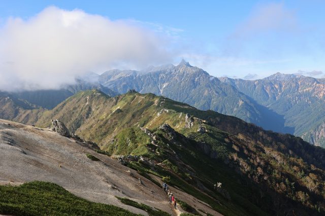 日中は秋の空が広がっていました。朝晩は冷えますが、歩くのには心地よい気温です。もう少しすると槍方面など標高の高いところでは雪がぱらつく時期になってきます。槍を目指すには今ぐらいがいいのかもしれません。