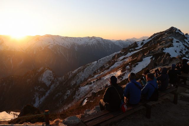 日の入りの頃になるとさすがに気温も下がってきて、氷点下近くになってきました。皆さんダウンなどを着てこの美しい夕日を眺めていらっしゃいました。日の入り時刻は18時半頃でした。