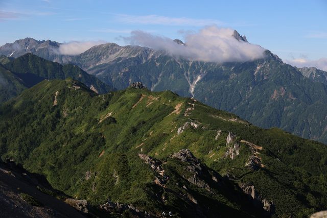 10℃を下回る日が出るようになってきましたが、そのせいか山肌の色は少し黄色っぽく変わり始めてきています。今日も縦走路に目をやれば、あちこちに人が歩いている姿を見つけることが出来ました。夏ですね。