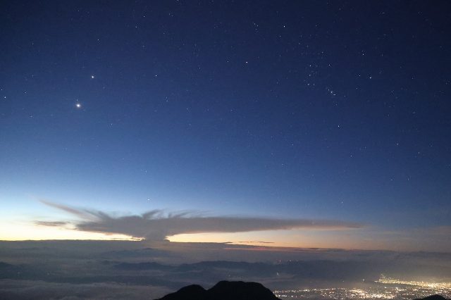 夏が折り返してきています。天気が安定してきて、今日も晴れとなりました。東の空が白んでくる4時過ぎ、オリオン座がすでに見やすい位置へと上がって来ています。