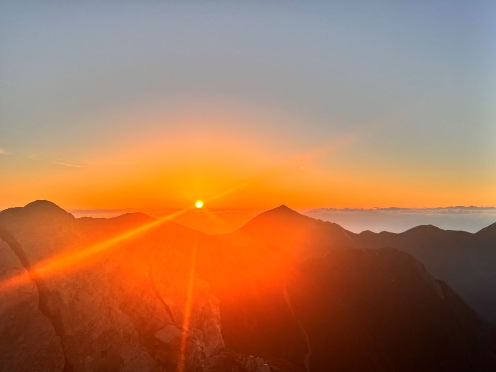 今朝は澄んだ空に太陽が顔を出し、稜線を橙色に染めました。