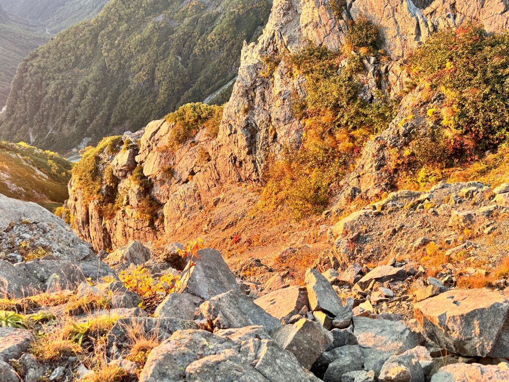 厳しい表情を見せる岩肌も、このひとときだけは優しく照らされていました。