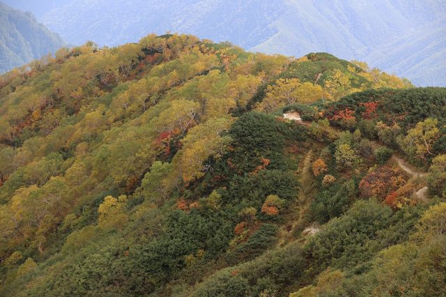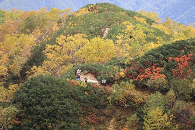 合戦尾根の紅葉はまもなくピークとなりそうで、今とてもきれいです。今日のように日中でも気温が低いとさらに進んでいくことでしょう。
