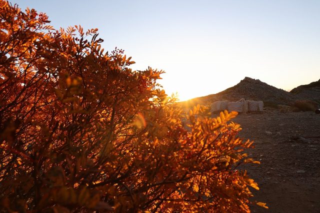 朝日に照らされるナナカマドが、より一層赤く染まりました。