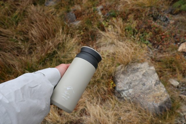 大きさは350mlと縦走中や山小屋無いなど気軽に温かい飲み物を持ち運びできる、