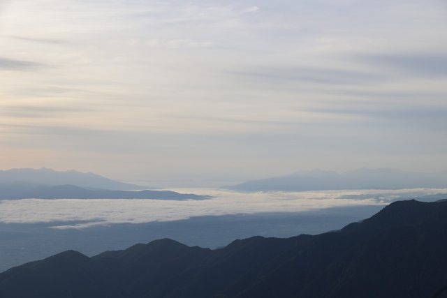 冷え込んだ朝、松本平の盆地には寒い時期特有の雲が出来ていました。その雲は日が昇るとやがて消えていきました。
