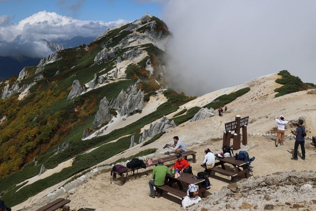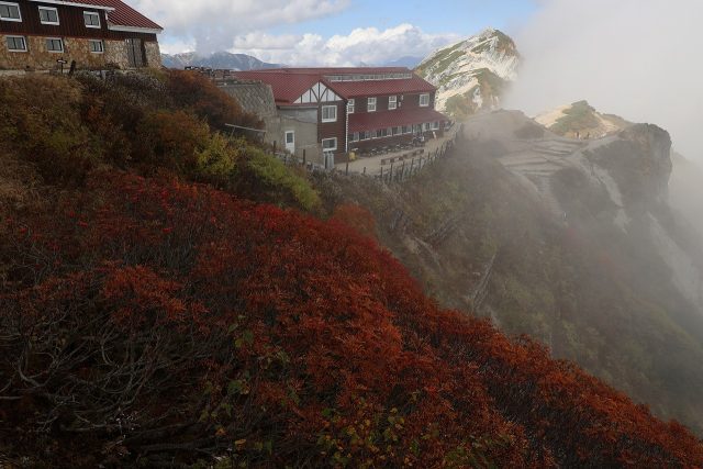 日中の気温は玄関先の温度計で10℃台まで上がり、外で過ごされる方も多くいらっしゃいました。紅葉を眺めながら外のベンチで過ごす時間はきっと素敵な時間だと思います。紅葉がきれいな今年ヘリポート下のナナカマドは特に美しく感じます。しかし、これも少しづつ葉を落とし始めてきました。稜線の紅葉を楽しむには早めにお越しになられるといいかと思います。