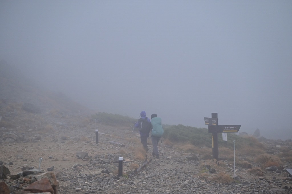 大天荘に宿泊された方や昼休憩で通過された方は霧の中を掻き分けてのご出発となりました.