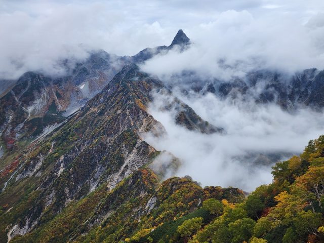 本日は朝から生憎の雨でした。昨日、西岳まで行く機会があったのですが雲と紅葉のコラボレーションが綺麗でした。