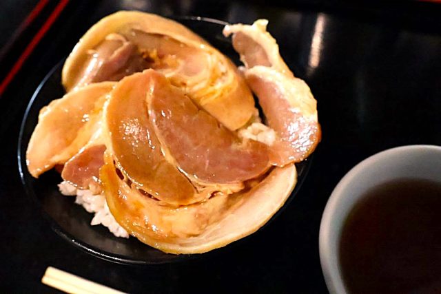 こちらはミニチャーシュー丼です。ミニなので器は小さいのですが、ご飯の量はしっかりお茶碗一杯分ほど盛られるので、見た目よりボリュームがあります。甘辛の醤油ダレが食欲をそそります。