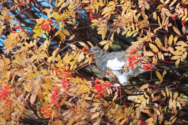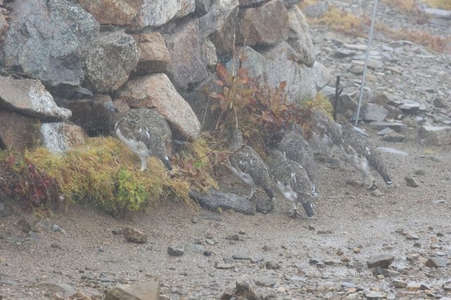 今日も雷鳥御一行が小屋の前のナナカマドに集合。