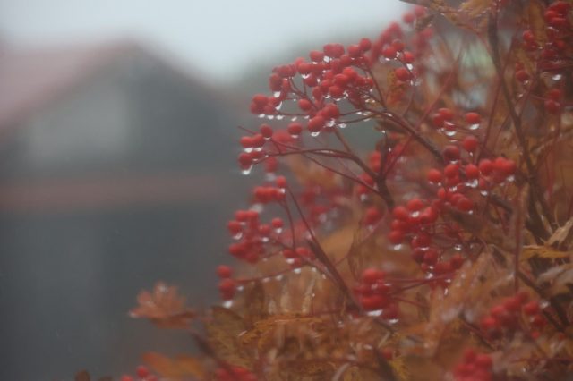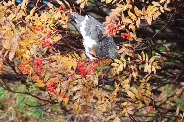 ナナカマドの中にすっぽりと入り込み、