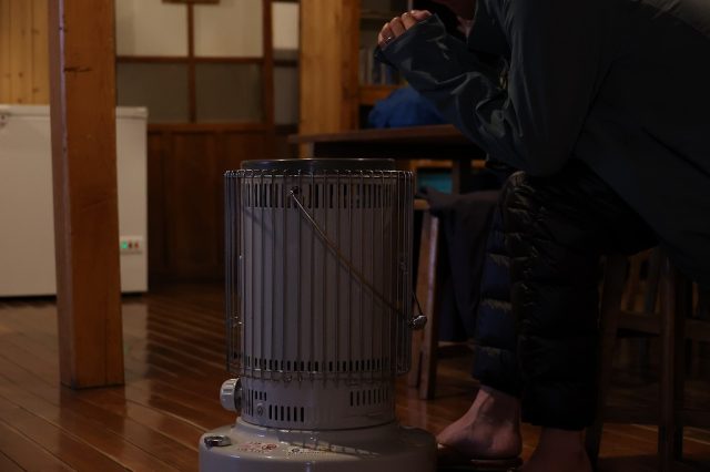 皆さんストーブで暖を取っていました。