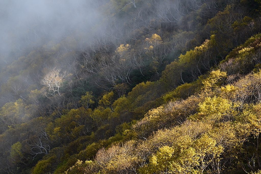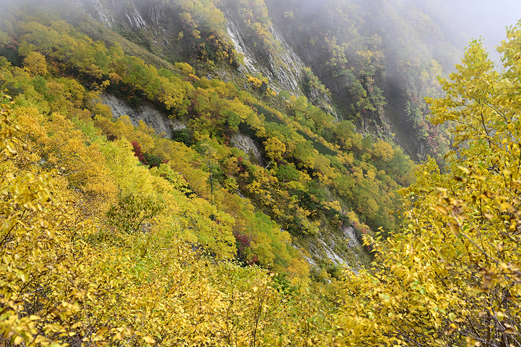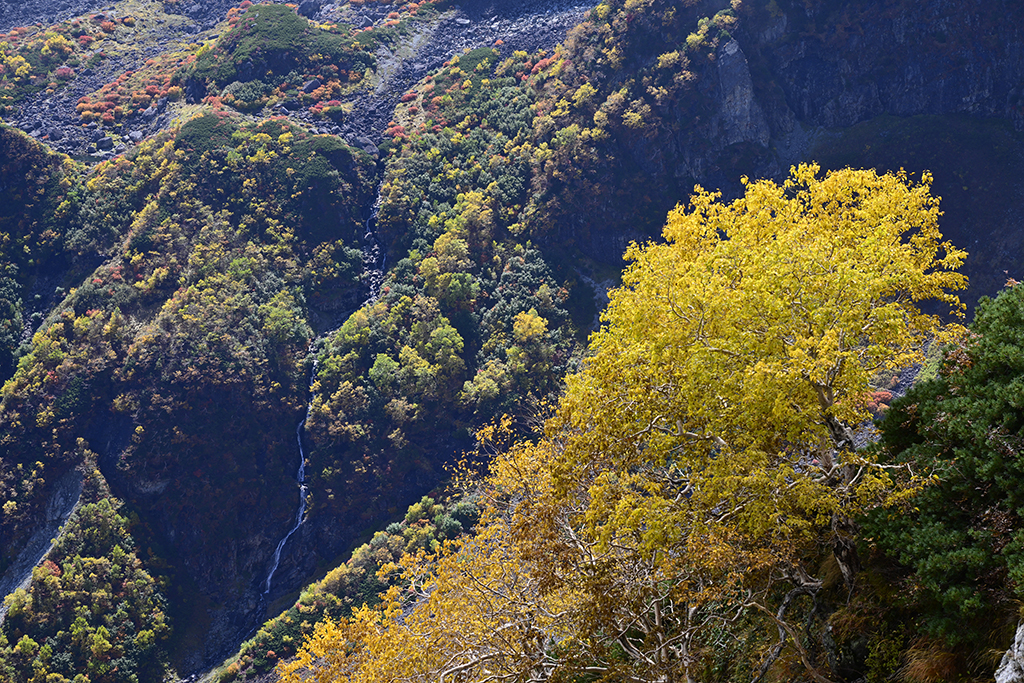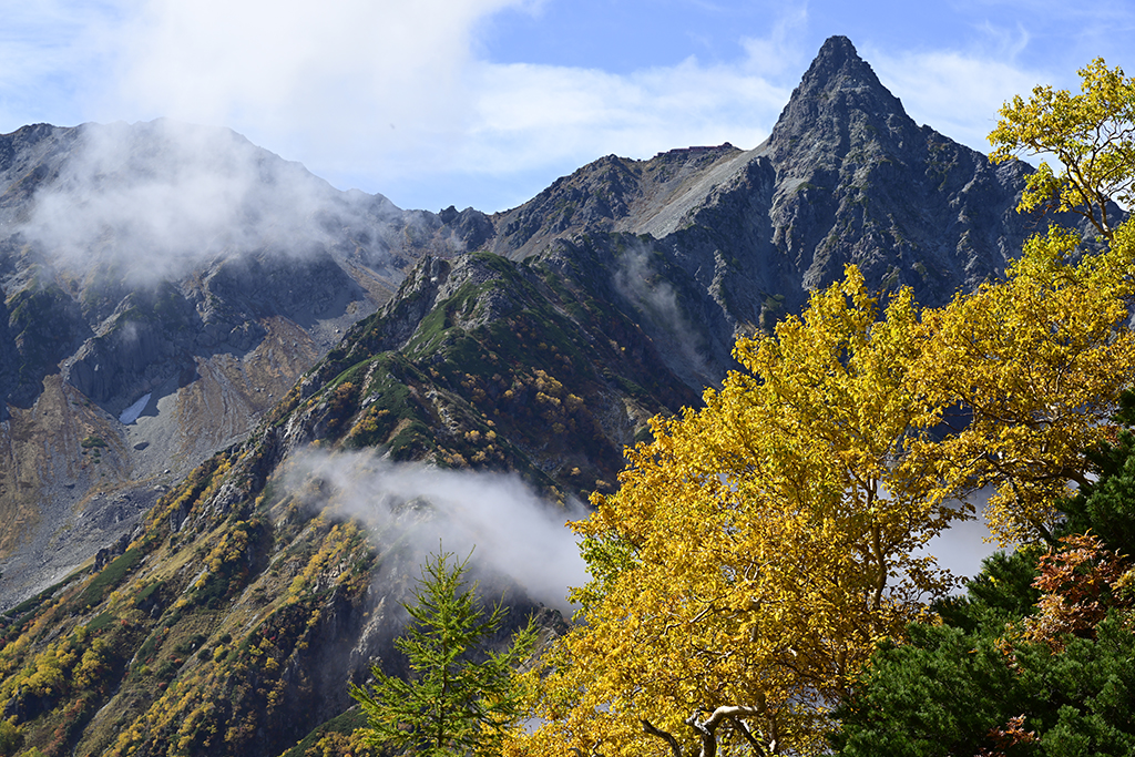 ダケカンバの黄葉が非常に綺麗で、今日は黄色をメインにした東鎌尾根からの風景を撮ってみました。