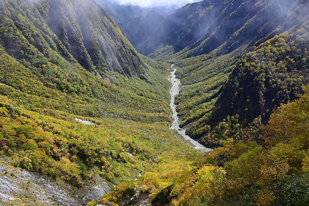 東鎌尾根よりババ平方面の眺め。下の方まで色付いてきたようです。